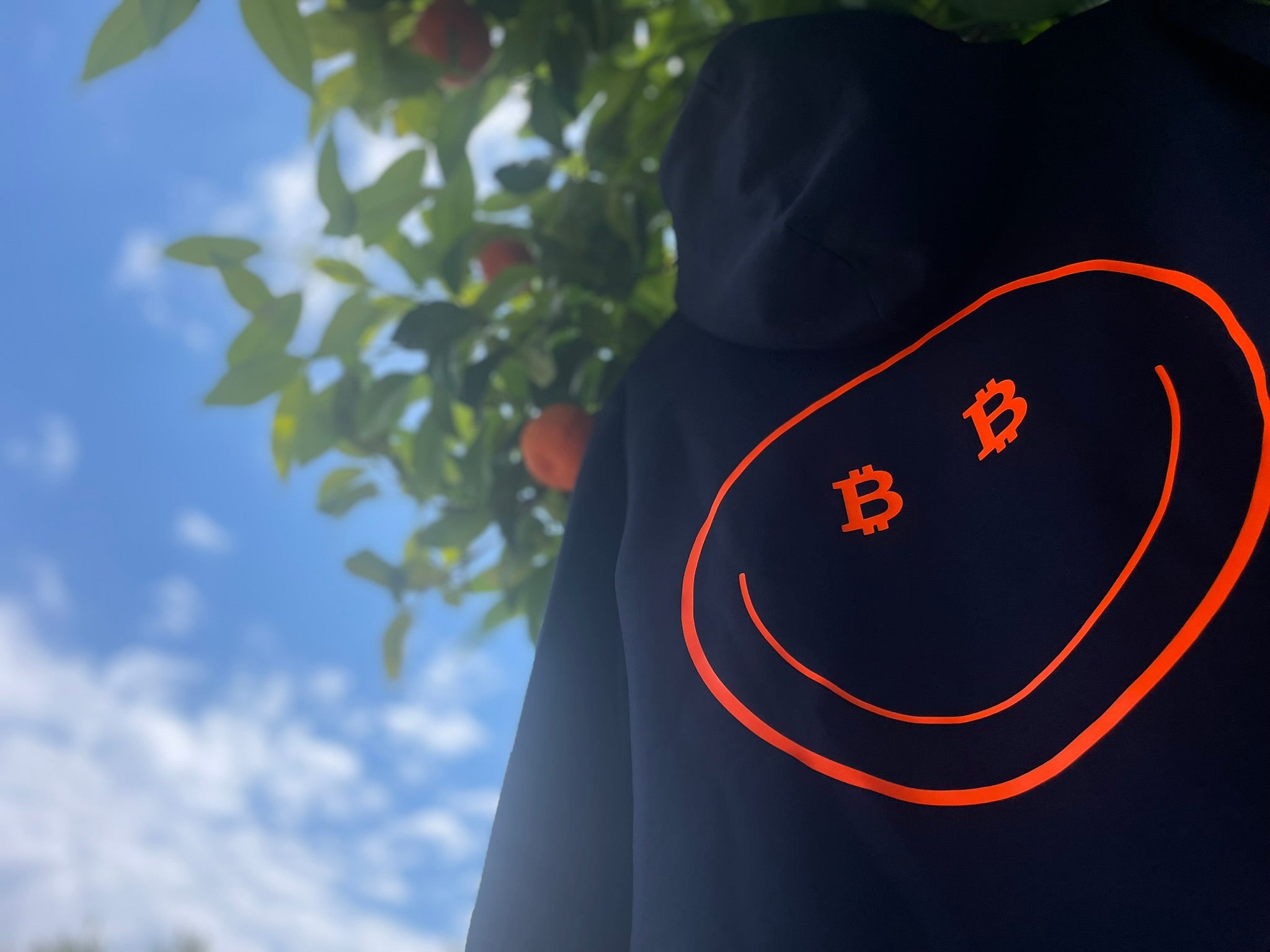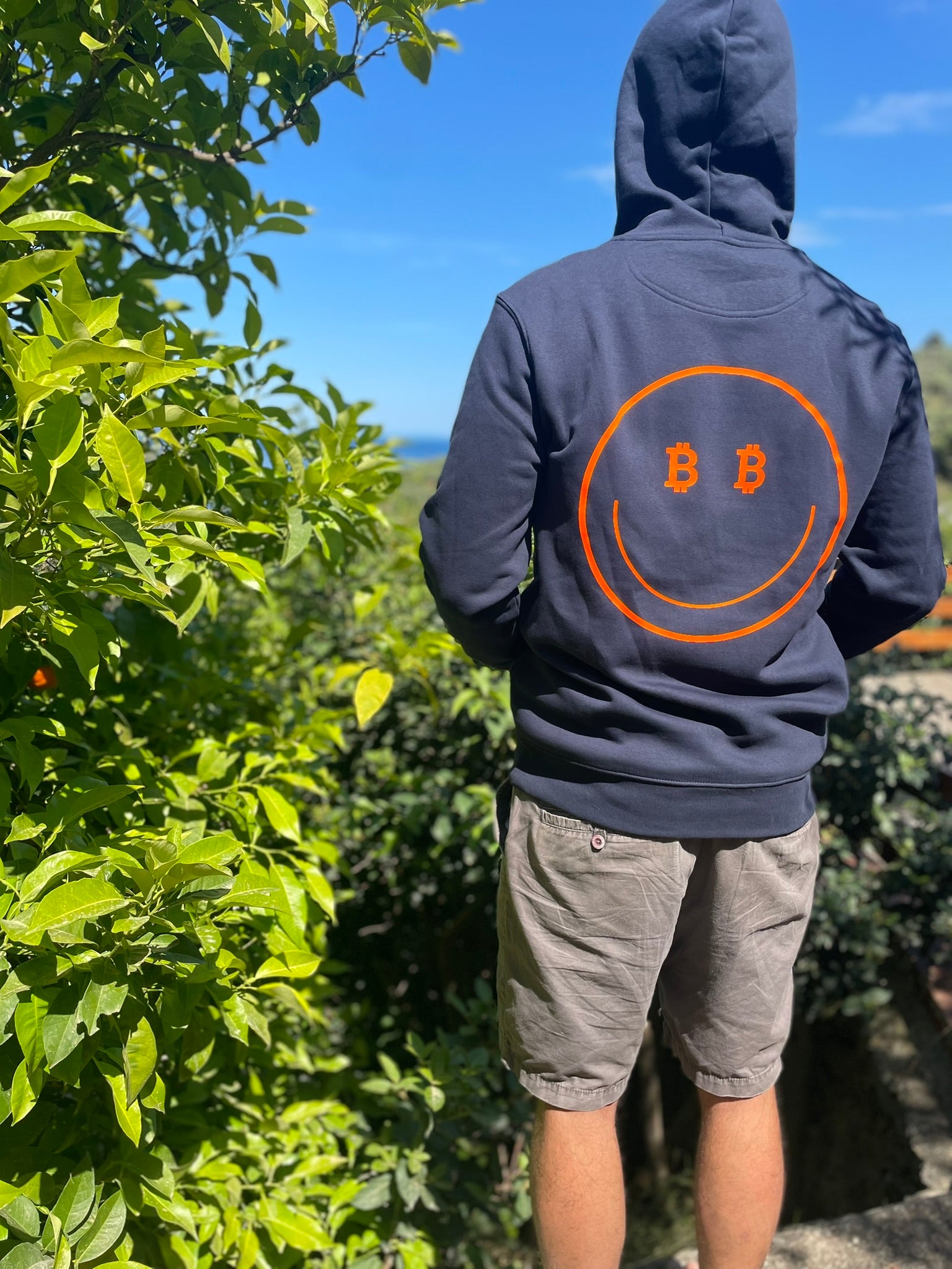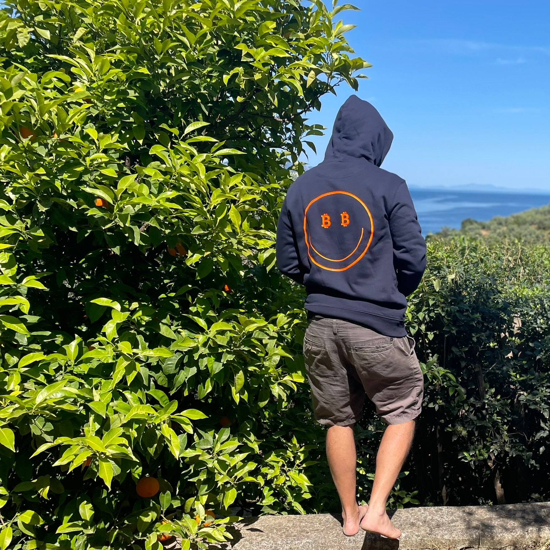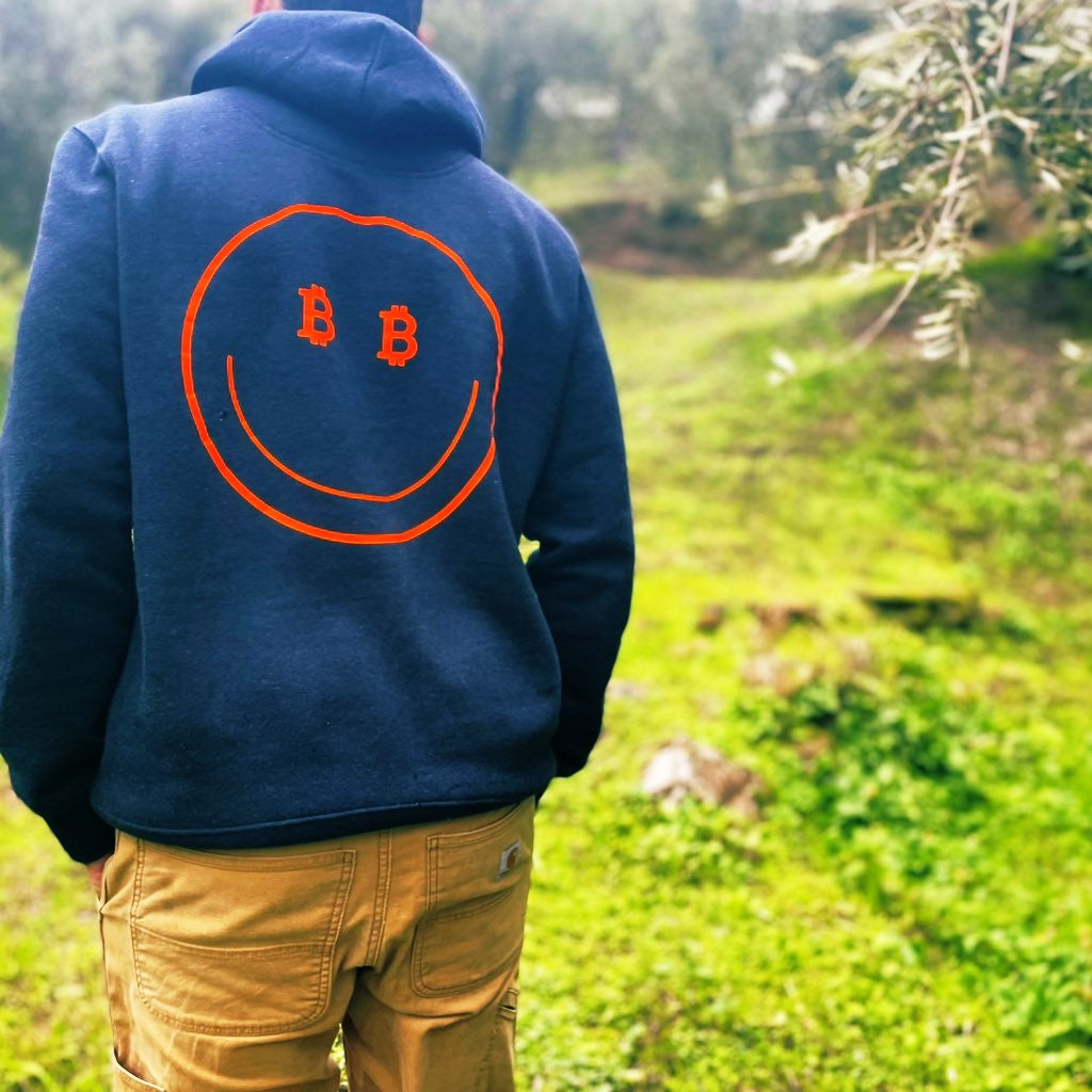 Built for the hodler who smiles through volatility. This hoodie brings heat with a double-orange Bitcoin grin on the back and a quiet flex up front. It’s a wearable node of positivity - for beach walks, block syncs, or bear-market barbecues. Proof-of-comfort meets proof-of-conviction.
