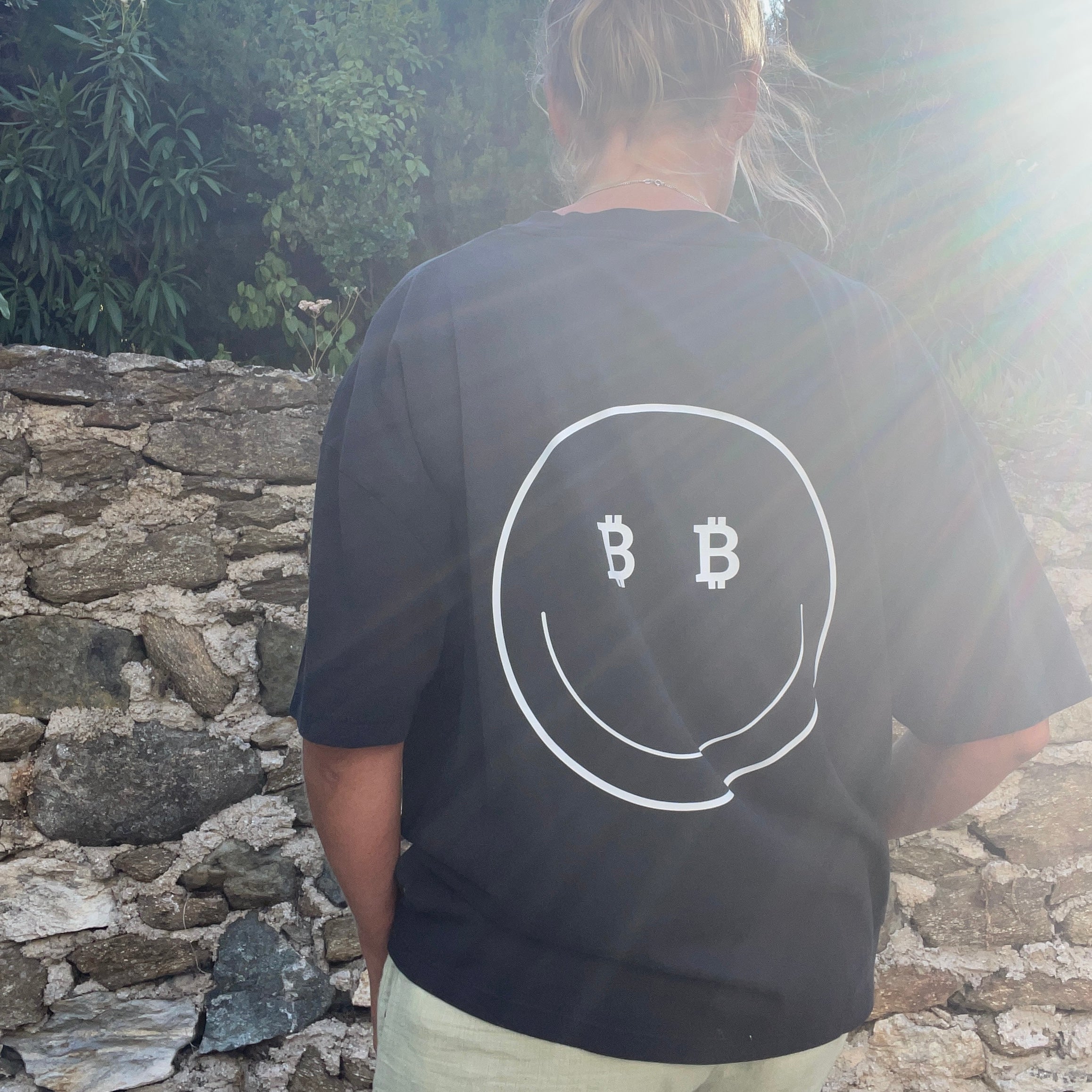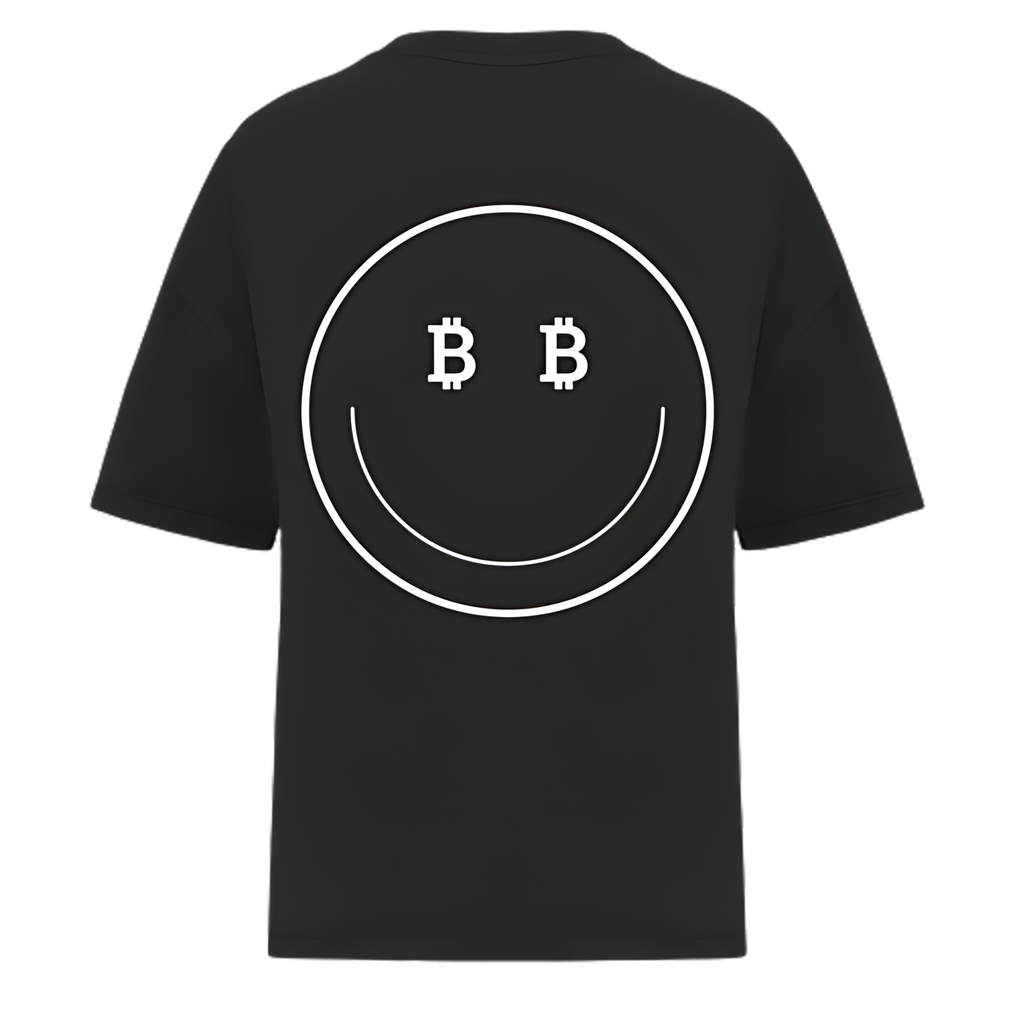 Smiley culture goes crypto. The iconic acid house grin gets a hard fork with ₿-eyes and a backprint that says, "I’m euphoric, not because it’s a bull market - but because I believe." Front chest hit reads simply: HODL. That’s the vibe. Whether you’re staking sats or staking your identity in a movement, this tee wears the signal loud and clear.